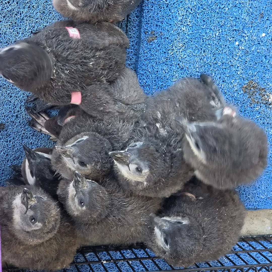 Like the Humboldt Penguins, African Penguins will lay two eggs that the parents will share responsibilities in raising to adulthood. However, sometimes the adults will struggle in caring for their young and can abandon their nests. This can be due to multiple factors such as environmental disturbance, parents being too inexperienced, the colony getting sick, etc. There are several managing authorities who monitor the colonies and conduct rescues if there are eggs or chicks in need. When rescues occur, the authorities will reach out to SANCCOB to arrange for the chicks and eggs to be taken in. There, they are incubated, hatched, and reared by round-the-clock staff with the goal of releasing these penguins back into the wild population. This is critical for helping to boost the population and hopefully ensuring its conservation.
