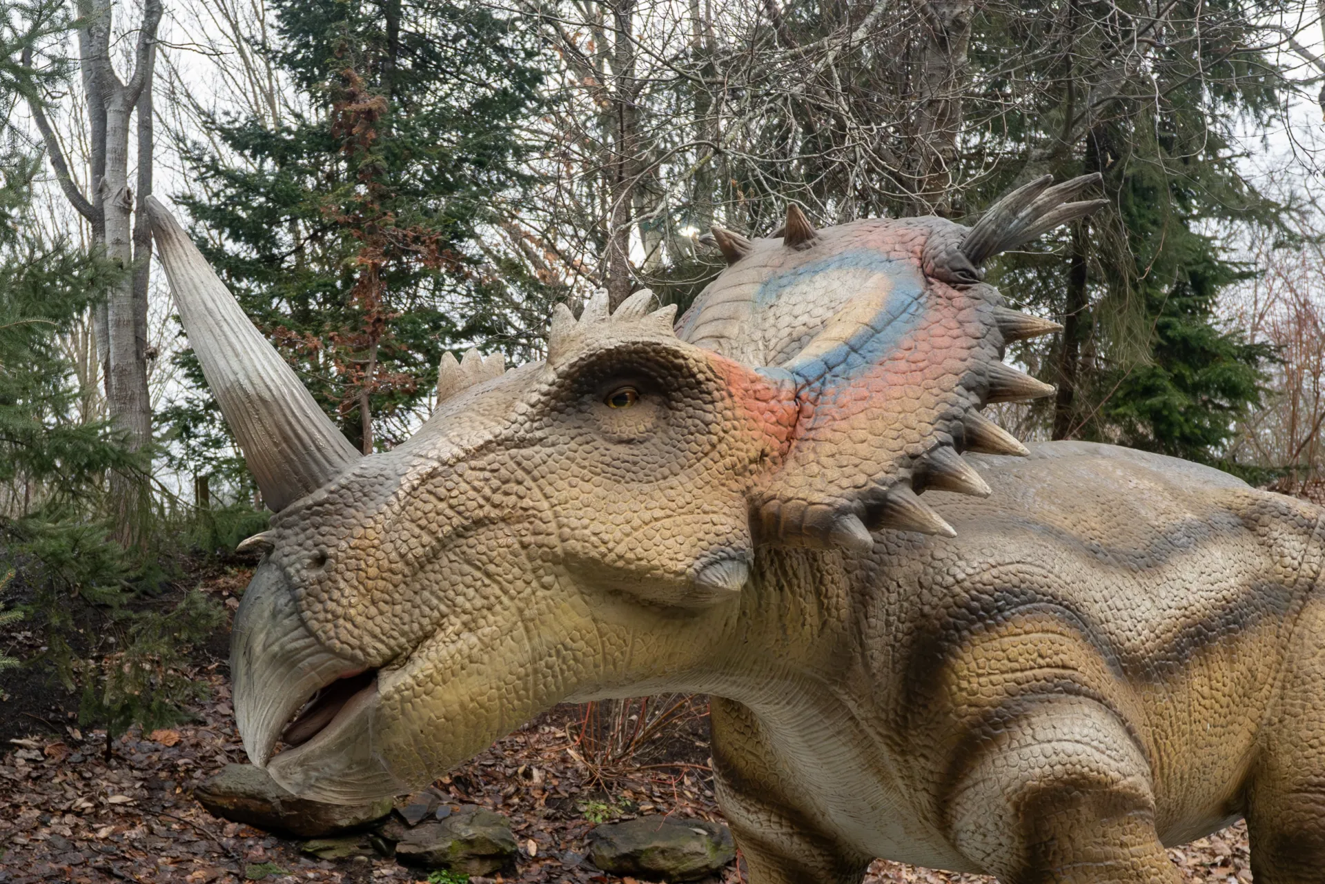 Guests can get up-close and personal with familiar dinosaurs like the plated and spike-tailed Stegosaurus, horned Triceratops, and lengthy-necked Apatosaurus, as well as some less familiar species like the Asian stegosaur Wuerhosaurus, the sauropod with the longest known neck Mamenchisaurus, the carnivorous and sickle-clawed Utahraptor, the brilliantly frilled Styracosaurus, and the massive flying reptile Quetzalcoatlus.